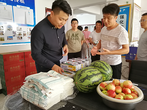 毛巾、涼袖、沐浴露、藿香正氣水、風油精、花露水、礦泉水…,這些防暑用品并不貴重,但是充滿著濃濃的情誼,給這個炎熱的夏天帶來了一絲愜意,一縷清涼。