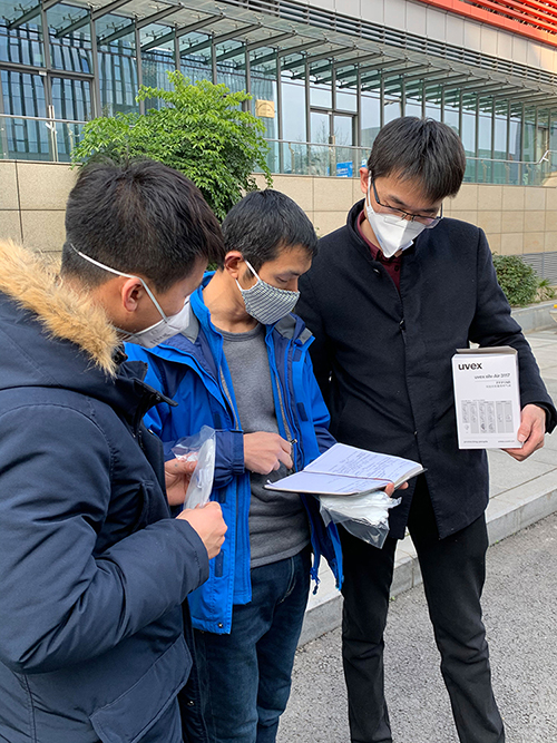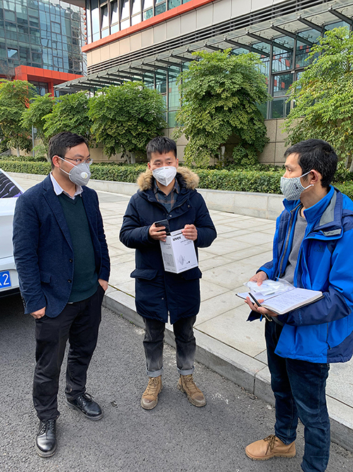 西南公司聶方華,總公司劉烽分別趕赴成都區域為衛計委專線開通出去查勘的同事們送防護用品及消毒液,安排防疫工作,同時慰問一線員工,確保掌握本單位部門員工的出行動態。