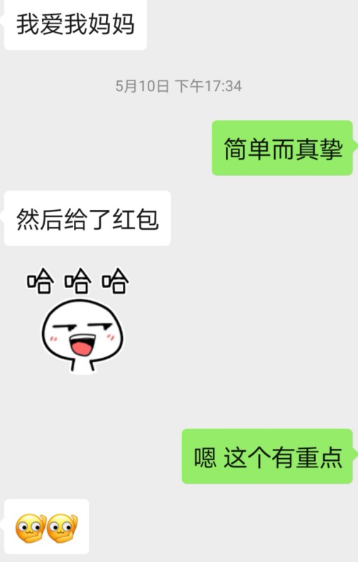 這位小伙伴,給紅包是很好的行為,畢竟沒有哪個節日是一個紅包解決不了的。但是“我愛媽媽”希望你能當面說給她聽。