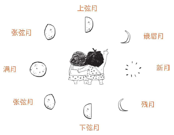 后來老原辛辛苦苦追到了小芳,熱戀中的二人玩了把浪漫,相約每天一起看星星、看月亮,從詩詞歌賦,聊到人生哲學。時間一久他倆發現事情沒那么簡單,月亮有時候很圓有時候很扁,有時候又彎了!而且月亮的變化很有規律,差不多30天一個周期,于是他們把月亮的周期叫作——一個月。