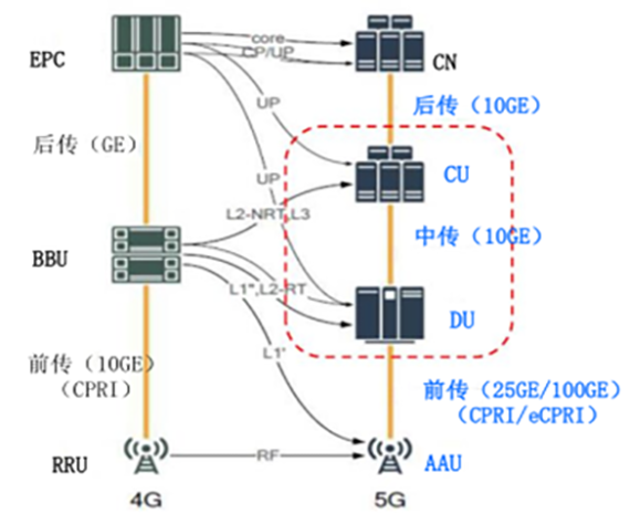5G時代,移動通信網絡架構如下圖:
